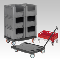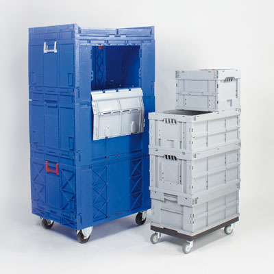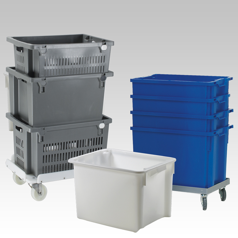 Las cajas apilables son a menudo la mejor solución: fácilmente apilables con poco esfuerzo. Para todas las situaciones en que el producto se almacena o retornan vacías en el mismo transporte. Cuando los costes de la devolución a portes debidos son por volumen, generalmente no se utilizan cajas apilables, sobretodo si el transporte implica grandes distancias. En estas situaciones recomendamos cajas encajables o plegables.