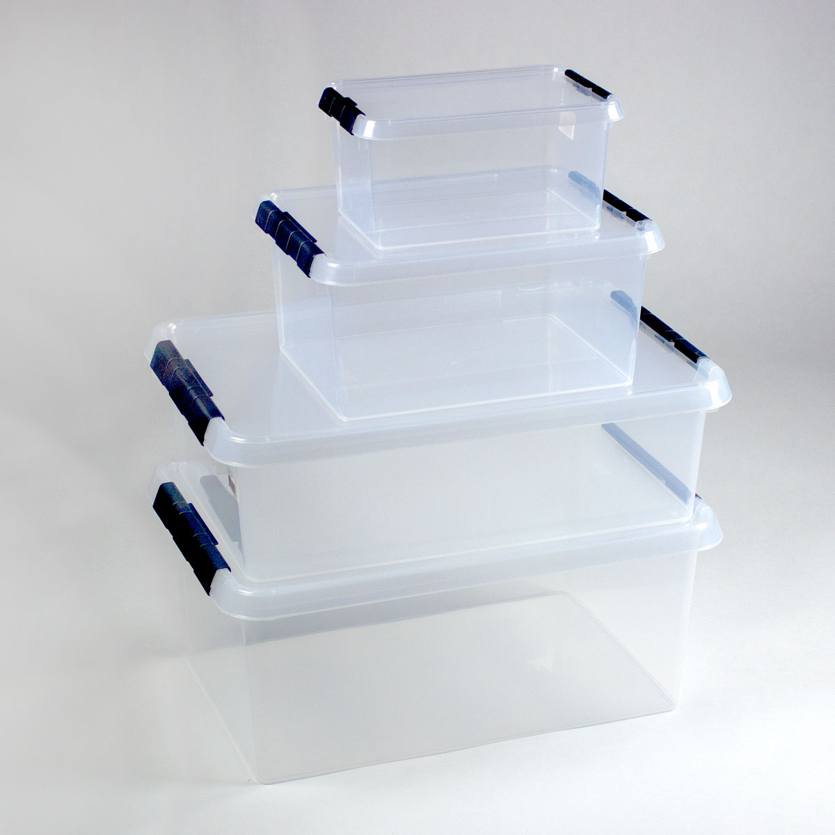 - E-Line; caja en plástico apilables cerradas con un precio muy competitivo, adecuado para un uso normal.