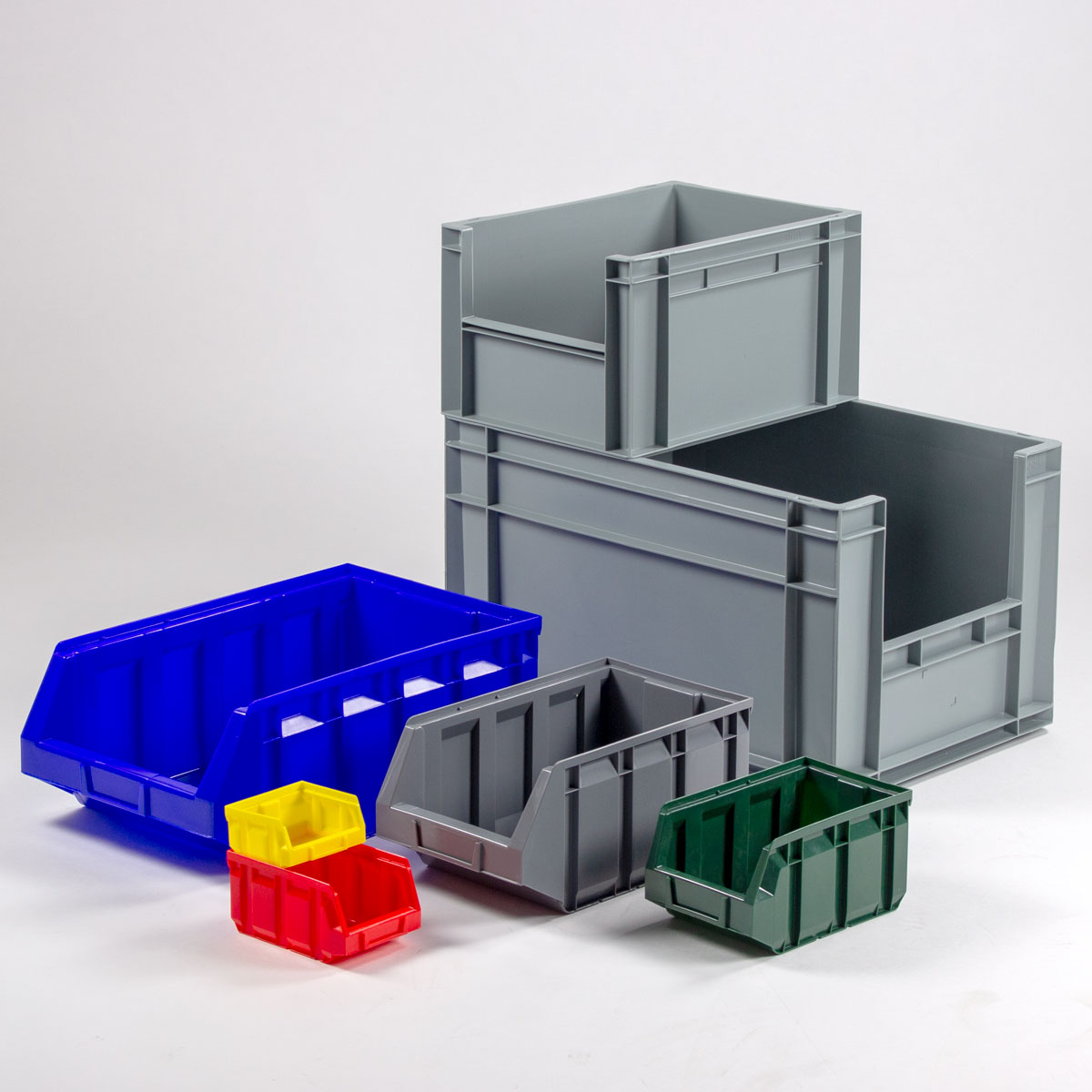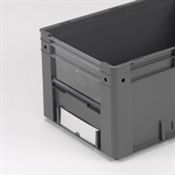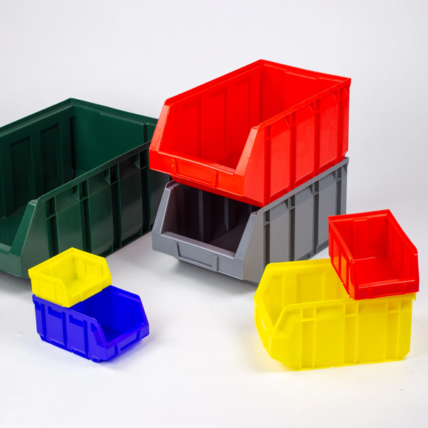 Las cajas de almacenaje de plástico son idóneos para guardar pequeños artículos y piezas de recambio. Se utilizan en almacenes y talleres de automoción. Las cajas de almacenaje con el frontal semiabierto a menudo son apilables y proporcionan más espacio.