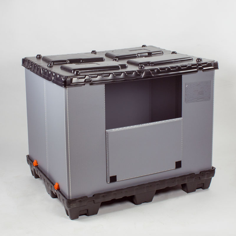 Las paredes de las unidades de envío están hechas de placas de material de plástico y se pueden plegar formando un embalaje plano que junto con la tapa facilita el transporte de retorno siendo económicamente más rentable. Las paredes están disponibles en alturas estándar aunque también es normal personalizarlas.