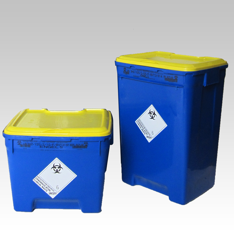Los contenedores para agujas están equipados con un innovador sistema de cierre temporal: con solo presionar un botón se puede abrir y cerrar sin peligro. En relación a su volumen tiene una excelente capacidad de llenado. Estos contenedores se fabrican, se prueban y se certifican según la normativa BS7320;: 1990, NFX 30-500, la homologación-UN para el transporte de residuos sanitarios UN3291 de acuerdo con las últimas normativas ADR/RID/IMDG.