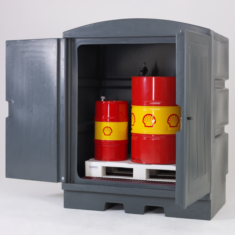 Voor het veilig en lekvrij opslaan biedt Engels dubbelwandige, rotatiegevormde opslagbakken en -kasten uit polyethyleen aan. Dankzij de chemicaliënbestendigheid, inherent aan lineair polyethyleen, zijn de kasten uitstekend in te zetten als chemiekluis voor zuren of zepen en logen.